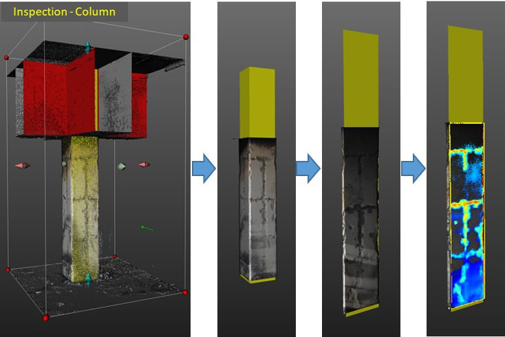 피해복구 물량 산출을 위한 부재 각각 단면의 박락 깊이 분석